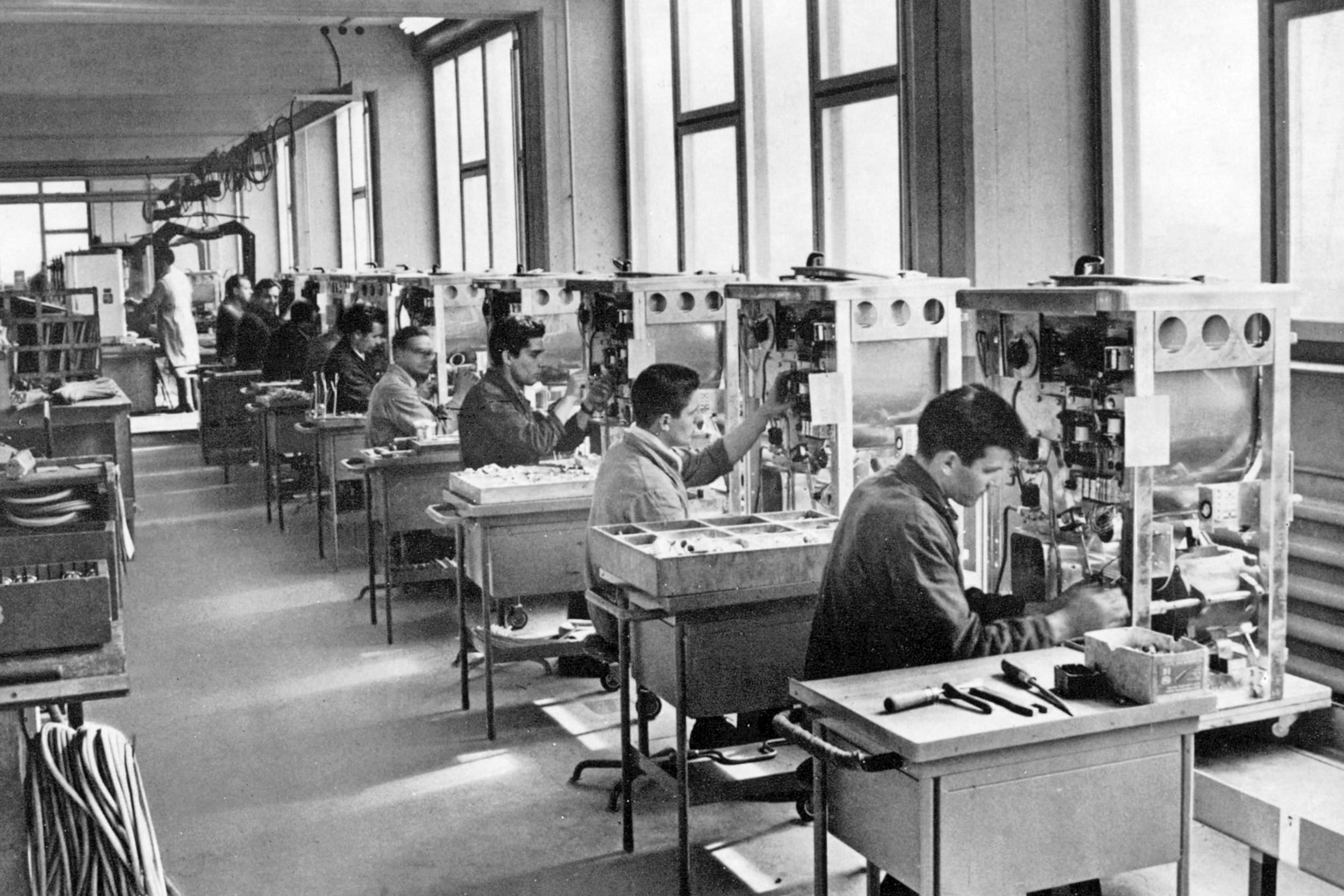 Während das traditionelle Gewerbe meist nahe oder innerhalb bestehender Siedlungen angesiedelt war, zog es die Industrie auf die grüne Wiese, auch in Zug. Um 1900 prägen Wiesen die Landschaft zwischen Zug und Baar, nur wenige Jahrzehnte schiessen Fabrikgebäude aus dem Boden, allen voran die 1913 gegründete Verzinkerei Zug. Das Familienunternehmen war zunächst eine Verzinkerei und verarbeitete Blechwaren für Haushalt, Landwirtschaft und Baugewerbe. Bereits 1915 brachte das Unternehmen den ersten holzbefeuerten Waschherd auf den Markt, 1929 die erste Waschmaschine. Weil Fabriken ausserhalb der Zentren gebaut wurden, formten sie meist auch eine abgeschlossene Welt mit Räumen für Produktion, Lager und Administration, aber auch mit Wohnsiedlungen für die Arbeitenden, häufig auch einer Villa für den Patron. Und darum herum wuchs ein Netz von Zulieferern und Dienstleistern, vom Kistenbauer bis zum Wirt. Man würde dem heute wohl Ökosystem oder Cluster sagen.