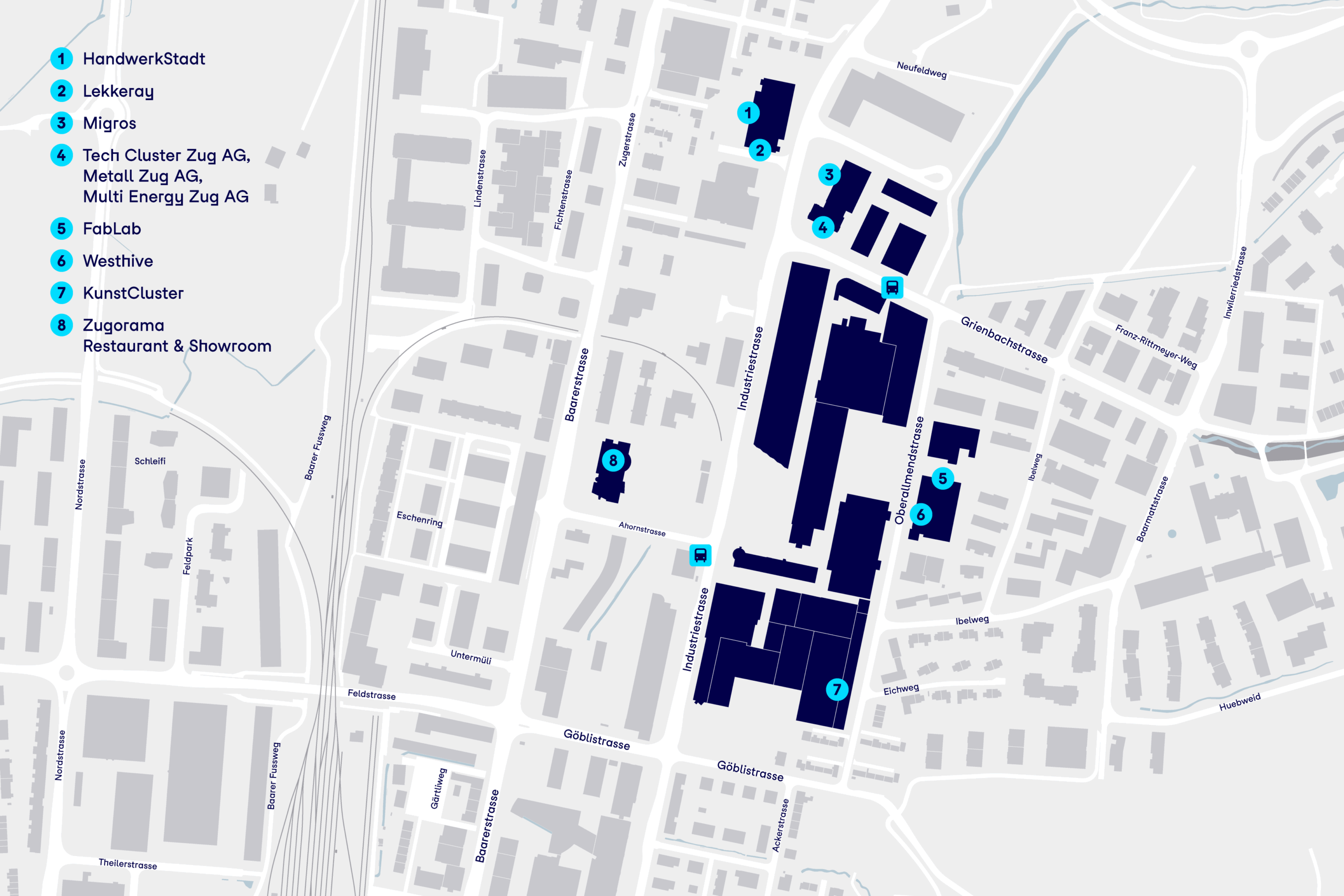 Mit der Transformation des Tech Cluster öffnet sich unser Industriegelände zur Stadt und wird zu einem neuen Quartier voller Leben: Nicht nur für Produktion, Arbeiten, Forschen und Lernen, auch zum Wohnen, für Restaurants, Cafés oder Läden und vielfältige, teils temporäre Angebote von der innovativen Freizeitwerkstatt bis zum Schaudepot.