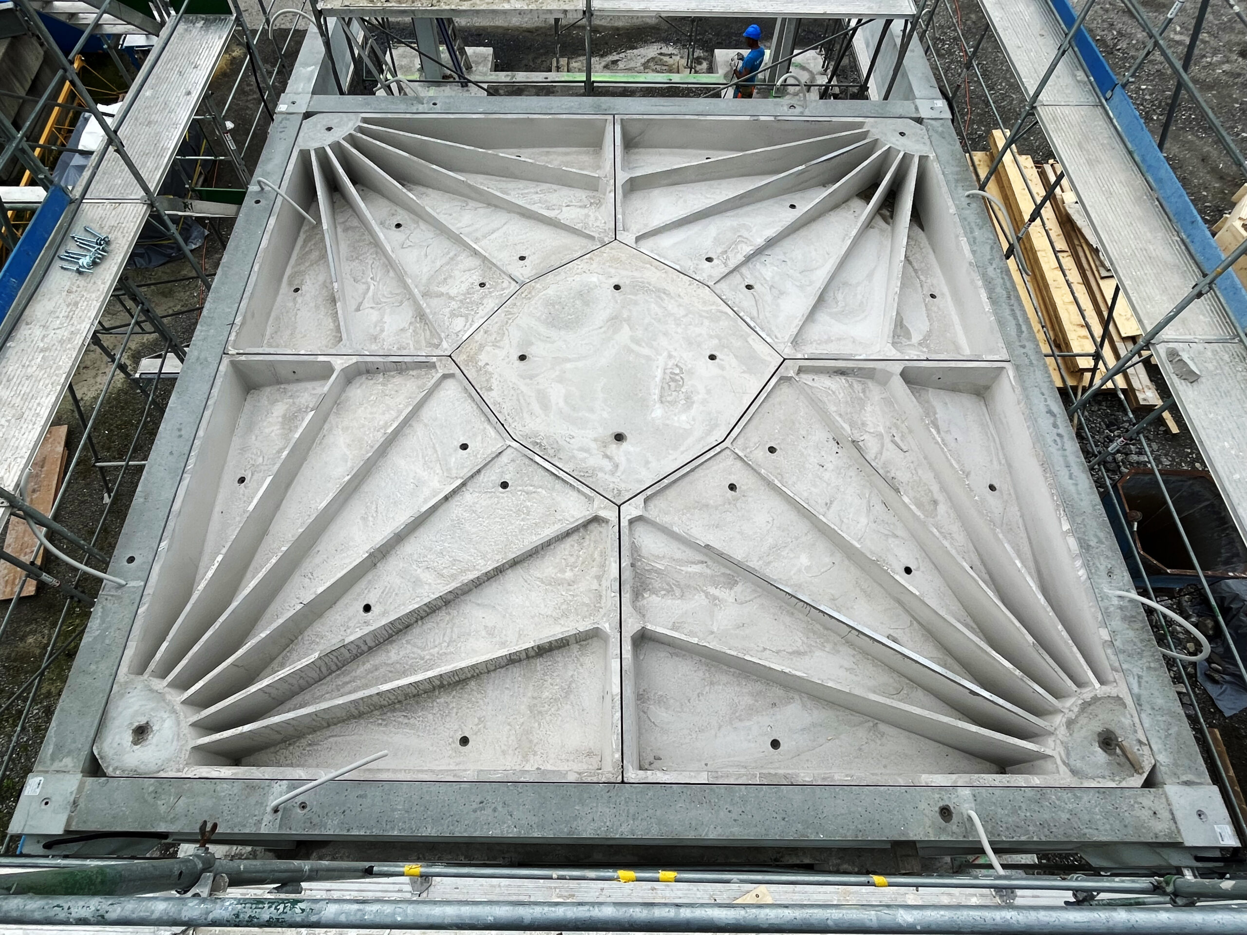 Die Forschungsgruppe rund um ETH-Professor Philippe Block hat die RFS-Decken an der ETH Zürich entwickelt und das Gewölbe anhand eines Mock-ups auf Verformungen, Schwingungen, Körper- und Raumschall, Feuer, Haustechnikinstallation, Produktion und Kosten 1:1 getestet und so die Machbarkeit nachgewiesen. Die Stützen-, Unterzugs- und Gewölbestruktur hat gegenüber einer konventionellen Flachdeckenkonstruktion bedeutend weniger Masse und spart rund 47 % CO₂-Emissionen ein. Da die Deckenfelder während des Lebenszyklus einfach geöffnet oder geschlossen werden können, weist das Tragsystem die von der Tech Cluster Zug AG gewünschte Anpassungsfähigkeit auf. Die Rippen zeichnen sich an den Unterseiten der Gewölbe ab, fassen die Akustikflächen und ergeben ein einzigartiges Muster, das die Erscheinung der Innenräume markant prägt.