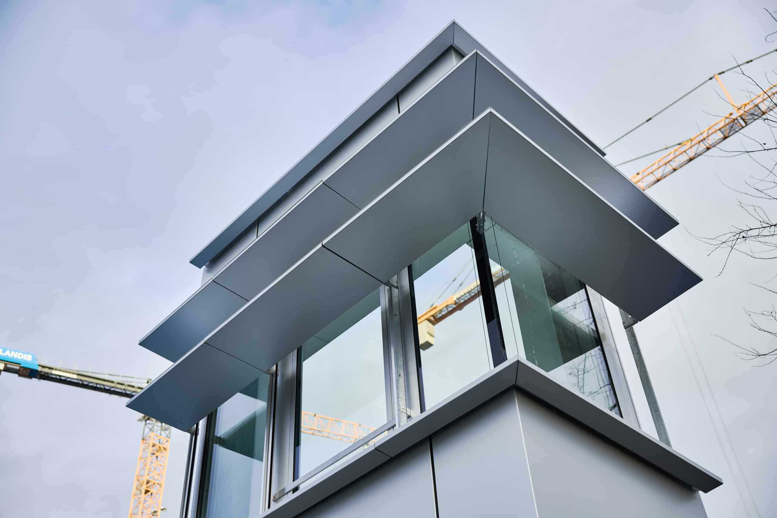 Durch die Gliederung in drei abgestufte Volumen vermittelt der Baukörper gekonnt zwischen den Massstäben des kleinteiligen Wohnquartiers und der grossformatigen Industriearchitektur. Der zwei- und anschliessend viergeschossige Sockel nimmt Bezug auf die umliegende Bebauung, während die Höhe des darüber liegenden Büroturms bereits auf die künftige Entwicklung des Areals verweist. So markiert das SHL-Südtor nicht nur den Eingang zum entstehenden Tech Cluster Zug, sondern fügt sich zugleich harmonisch in die bestehende Quartiersstruktur ein.